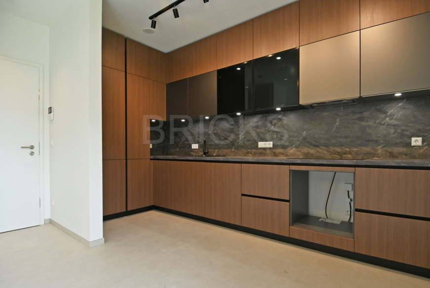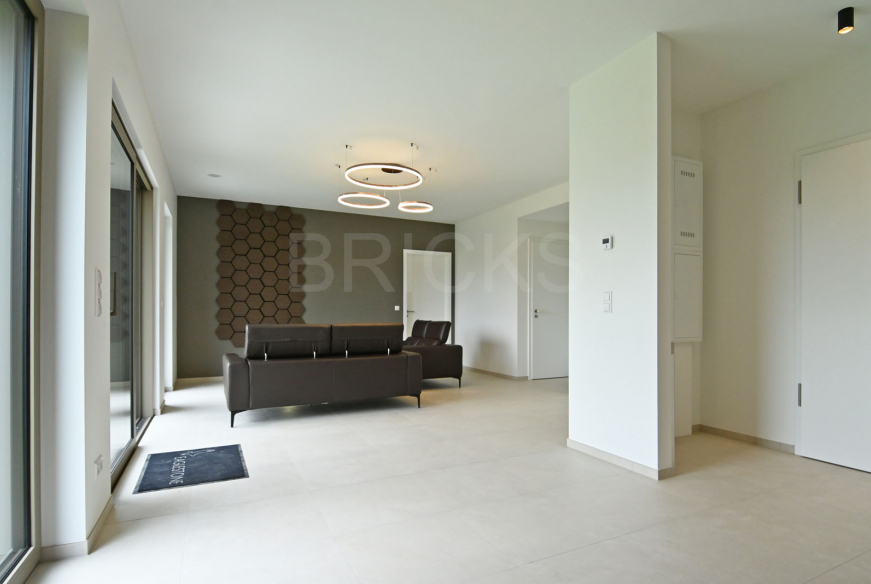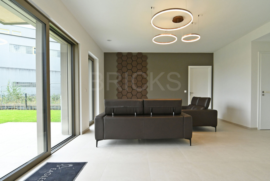The BRICKS agency presents this new, furnished flat for rent. It offers a living area of 65.28 m², beautiful terrace (11.25 m²) and a big (85.31m²) garden. An extremely modern and tastefully furnished condominium, with extra high celling (2.7m) and flooded with day light thanks to its large windows.