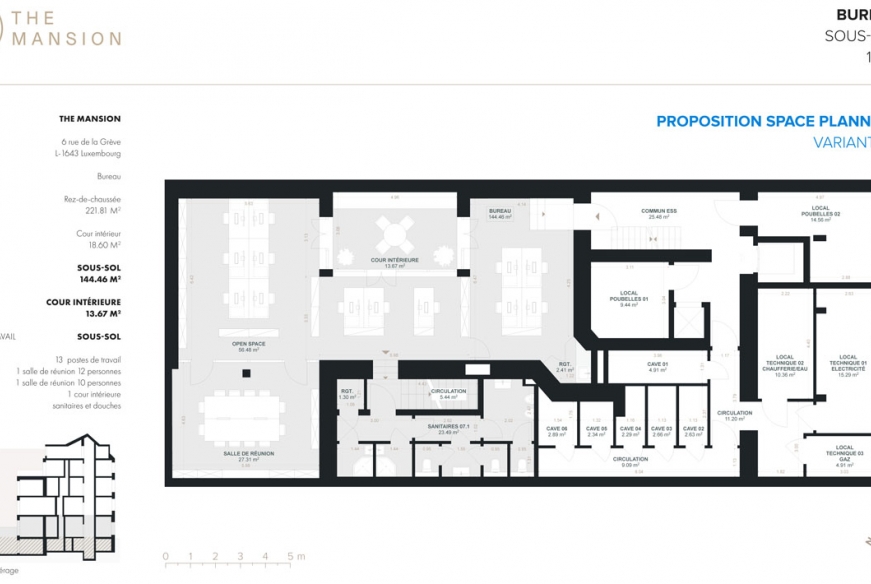The Mansion propose 1 bureau,  d’une surface de 366,27 m2.