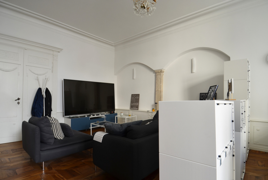 Idéalement situé Passage Gelle Klack, grand studio offrant une surface de +/- 50 m2. A proximité de tous les commerces du centre ville et du Palais Grand-Ducal, situation idéale pour les riverains, grand studio offrant une pièce à vivre avec cheminée, moulures au plafond et aux murs, un dressing séparé, une salle de bain avec machine à laver incluse, une cuisine indépendante complètement équipée haut de gamme.