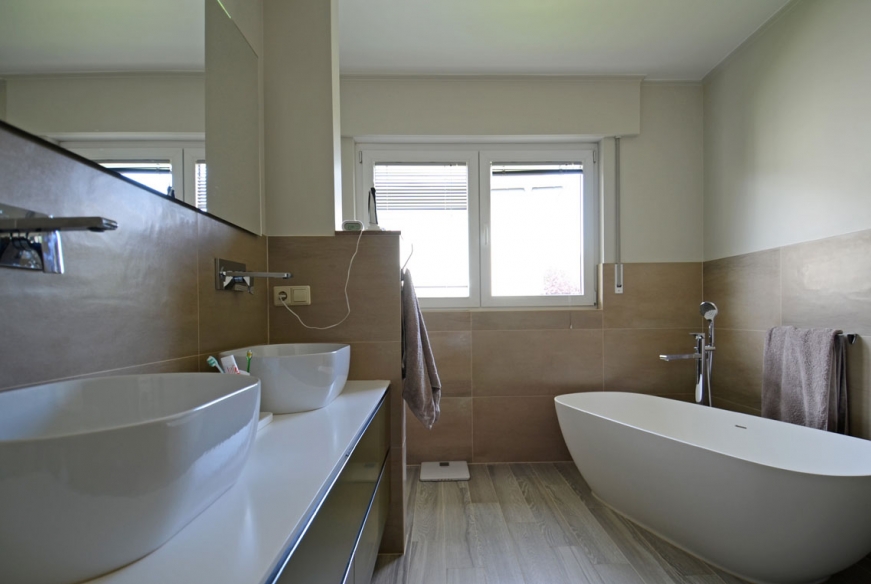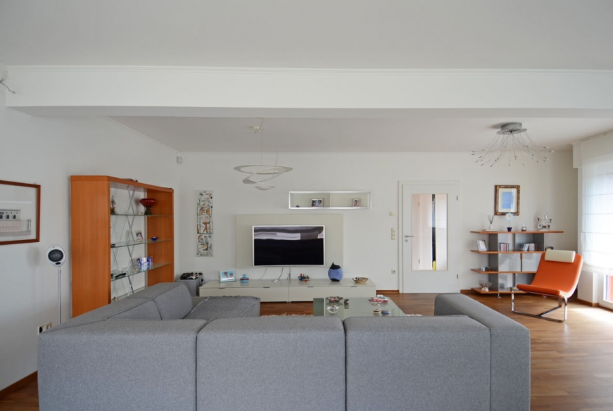 Environnement : Ce quartier résidentiel dispose d’une bonne connexion au réseau des transports publics. Accès facile au distributeur d’autoroute. Crèches, écoles maternelle et primaire, ainsi que l’école européenne se trouvent à proximité et sont desservies par des bus de la Commune. Situé dans un beau quartier exclusivement résidentiel, sans trafic de passage.