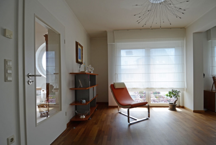 Ce duplex datant de 2003 se situe aux 1er et 2ème et dernier étage d’une maison bi-familiale en plein cœur d’un quartier résidentiel très prisé de Strassen. Le bien offre une surface habitable totale de 189 m2 et dispose de 5 chambres à coucher.