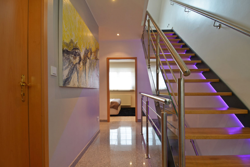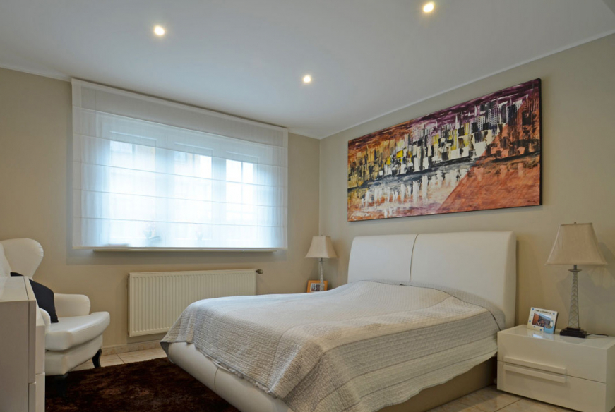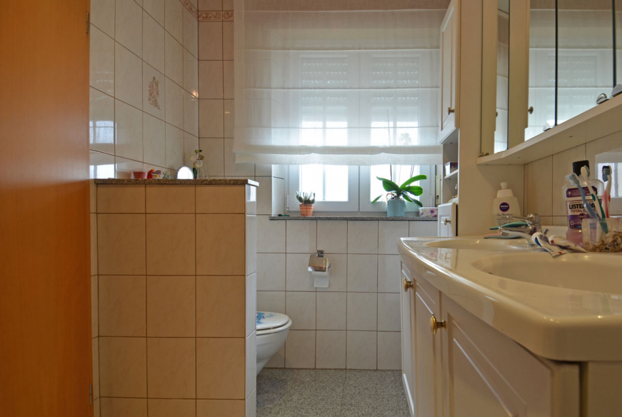 Petit hall de nuit desservant 3 chambres à coucher dont 2 avec placards intégrés et une salle de bain avec baignoire, WC et double vasque.