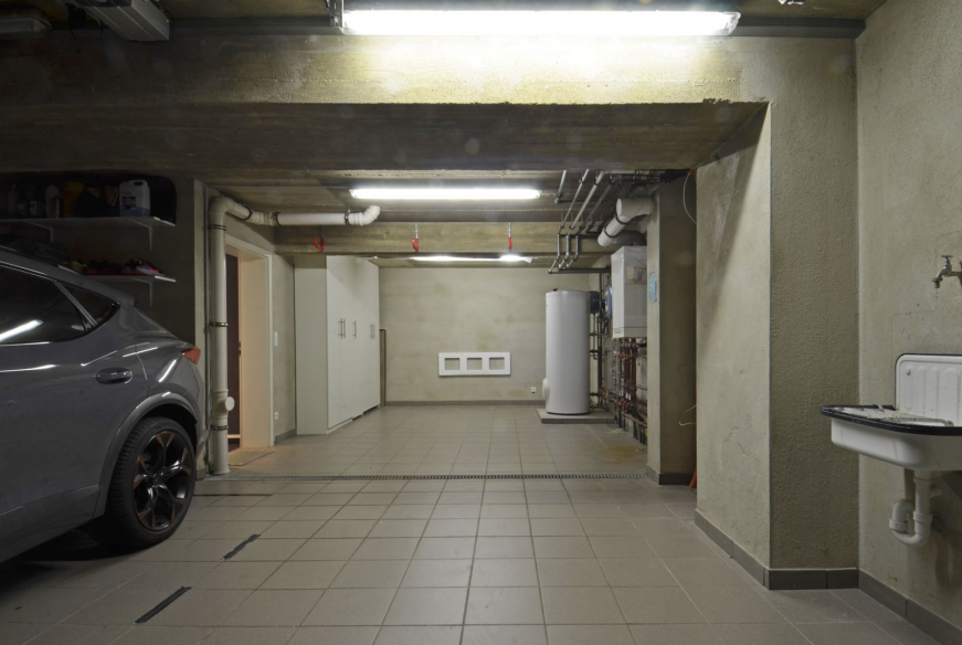 Grand jardin privatif avec une terrasse de 105m2 orientée plein sud, directement accessible par les parties communes, un garage pour deux voitures en enfilade et un emplacement extérieur complètent l’offre.