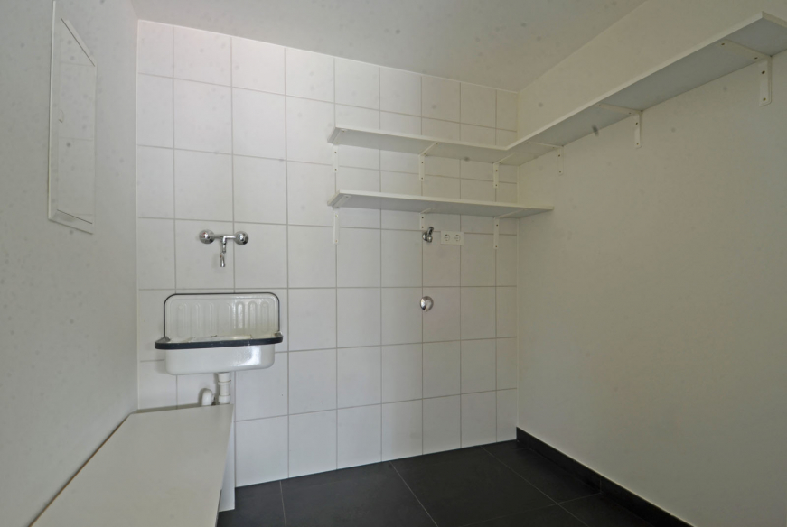 2 chambres à coucher avec parquet en hêtre massif et salle de douche commune, vaste buanderie, WC séparé.