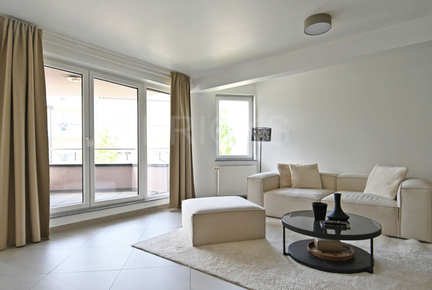 Situé au 1er étage d’une copropriété datant de 2009, ce bel appartement de 64 m2 habitables offre un vaste living très lumineux et une cuisine ouverte équipée haut de gamme (plaque à induction avec hotte intégrée de la marque BORA, le réfrigérateur et le lave-vaisselle de la marque SIEMENS et le four de la marque NEFF) avec un espace salle à manger, un vaste balcon de 8 m2 (orienté sud-est) accessible par le séjour et la cuisine, une spacieuse chambre à coucher, une salle de bains avec douche, lavabo et WC.