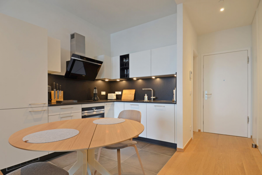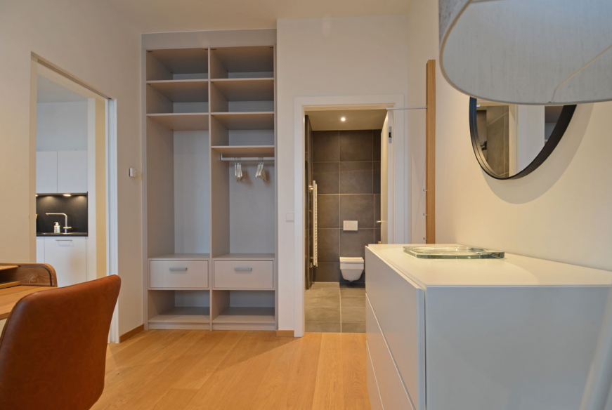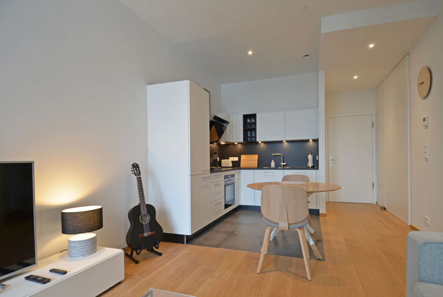 Appartement de haut standing d’une chambre à coucher à louer à Luxembourg-Kirchberg. Entièrement équipé et meublé.