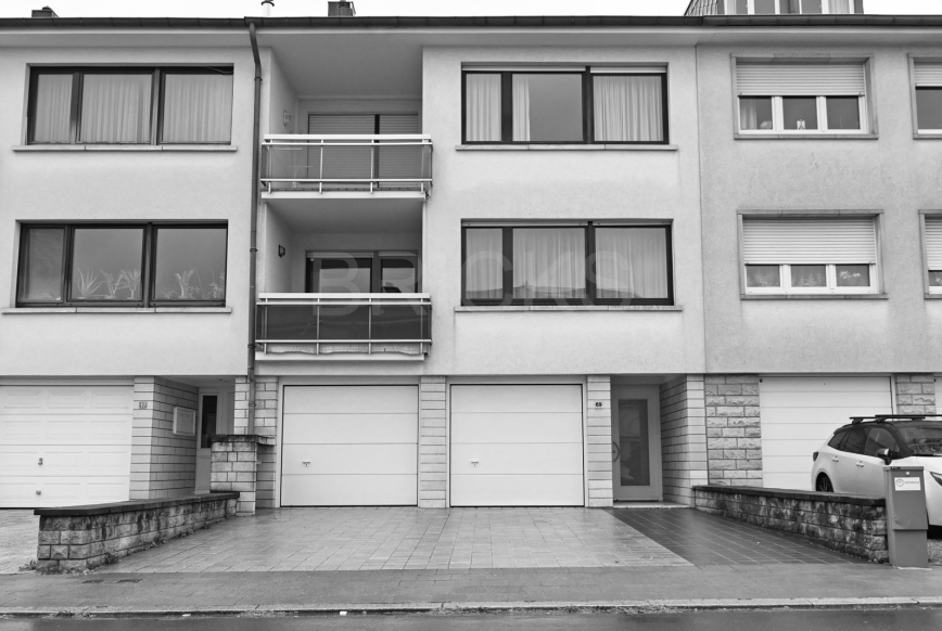 Bel appartement d’environ 100 m2 avec 2 chambres à coucher, un balcon, un jardin, un garage et une cave à Luxembourg-Cents.