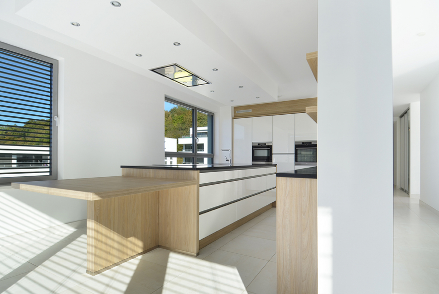 L’appartement bénéficie de finitions haut de gamme : système de domotique universel KNX pour la gestion des luminaires et des stores ; interrupteurs KNX Jung et centrale de pilotage Gira ; câblage data/RJ45 vers toutes les pièces principales ; chauffage au sol contrôlé par zone; climatisation dans chaque pièce principale ; VMC individuelle ; menuiseries intérieures ; stores à lamelles aluminium électriques ; 2 portes d’entrée de sécurité, dont une protégeant l’accès privatif direct à l’ascenseur; vidéophone ; châssis de fenêtre en aluminium ; triple vitrage.