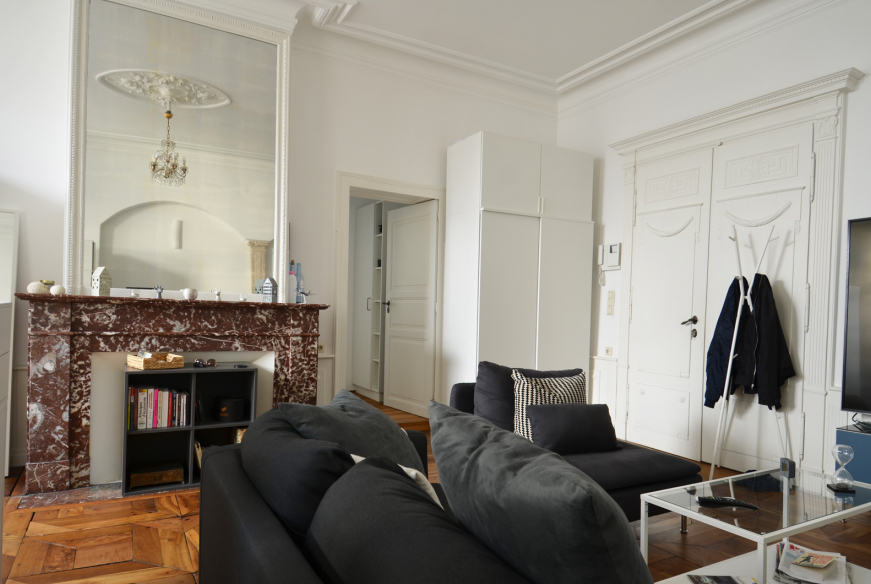 Situé dans un immeuble classé, il dispose d’un magnifique parquet d’origine.