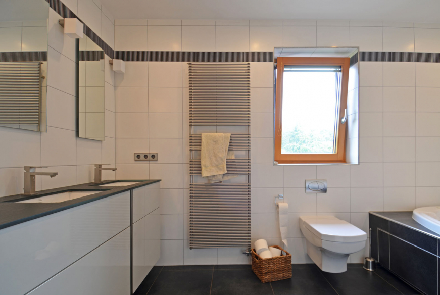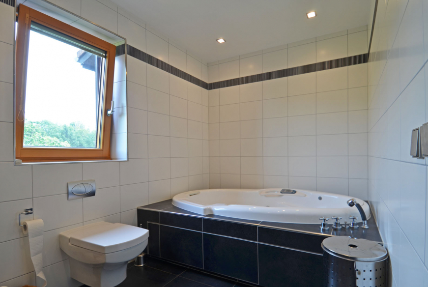 Rez-de-chaussée : grand hall d’entrée avec un vestiaire ; salle de douche (douche à l’italienne, WC et lavabo) ; trois chambres à coucher ; salle de bain (baignoire hydromassage, WC, double lavabo) ; garage.