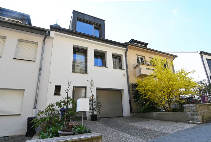Belle maison de ville contemporaine entièrement rénovée, avec jardin, 4 chambres à coucher et garage. 190 m2 de surface habitable. Idéalement située à Luxembourg-Mühlenbach.